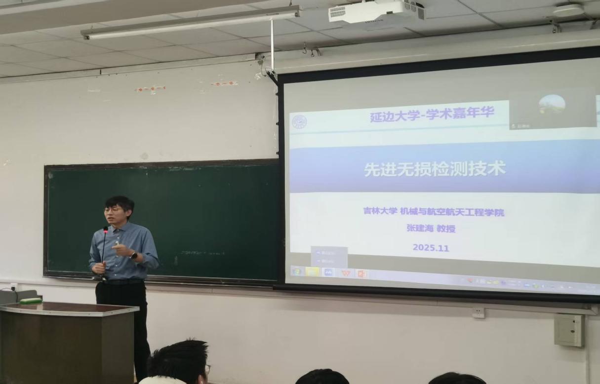 在专题报告环节,吉林大学刘鹏教授系统阐释了“工程筑基·劳动铸魂·创新赋能”三位一体育人体系的探索与实践;周立明教授分享了计算力学在重大工程设计与优化中的应用;田海龙教授探讨了数控装备可靠性技术从理论到产业转化的关键问题;中国科学院北京纳米能源与系统研究所的研究人员介绍了纳米发电机测试系统与自驱动智能传感技术的最新进展。此外,延边大学2008届优秀校友、吉林大学张建海教授通过线下专题讲座,深入剖析了面向新一代工业需求的先进无损检测技术的工程化应用。