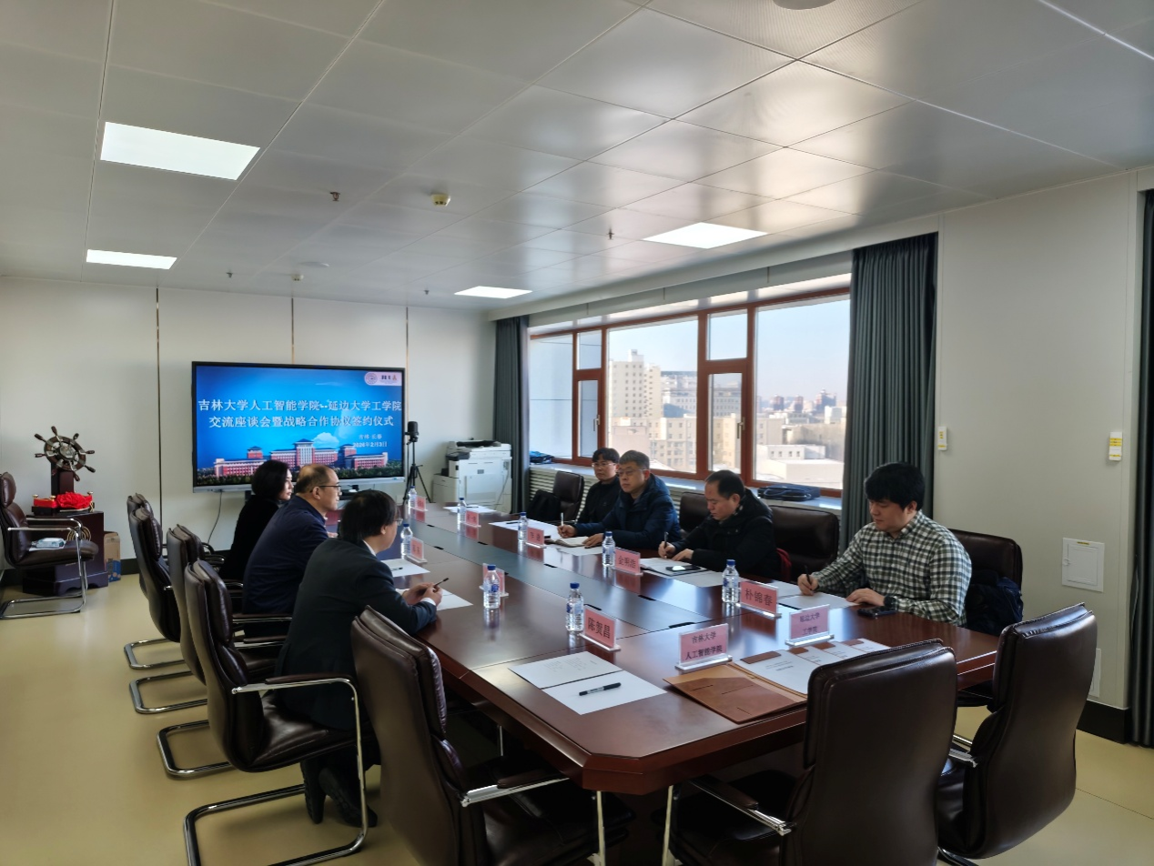 为深入贯彻国家创新驱动发展战略和新一代人工智能发展规划,全面落实高等教育内涵式发展要求,进一步加强人工智能领域校际协同与资源共享,2026年2月3日,延边大学工学院院长李德、研究生院副院长金明浩、工学院副院长朴锦春等一行五人访问吉林大学人工智能学院。吉林大学人工智能学院院长宋轩,党委书记郑东,副院长刘丽、陈贺昌等出席座谈会。双方围绕人工智能学科建设与高层次人才培养等议题展开深入交流,并就深化对口支援合作达成广泛共识。