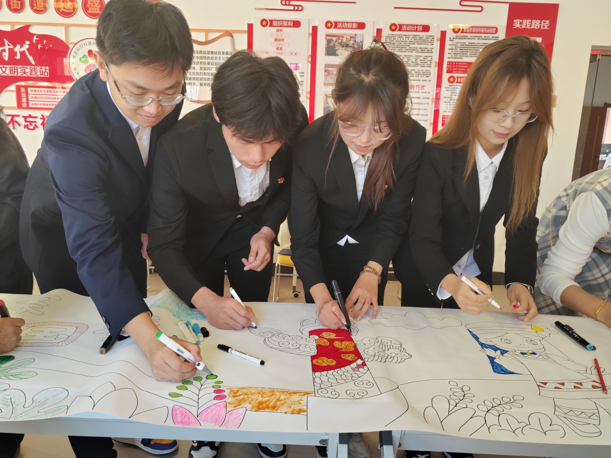 宣讲结束后,活动进入轻松愉快的互动环节。红歌传唱引发全场共鸣,围绕宣讲内容的知识问答大家踊跃参与,气氛热烈;“重走长征路”红色团建游戏让参与者在协作中体会到革命征程的艰辛与伟大。压轴环节“围炉话幸福”和“同绘幸福景”将活动推向高潮,大家围坐一起,边品尝茶点边分享感悟,最后全体党员、志愿者和居民共同执笔,在长卷上描绘出民族团结的生动画面。