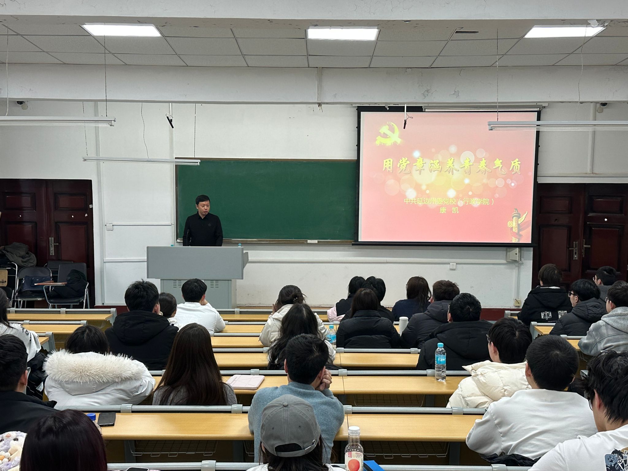 3月18日,工学院在3312教室举行第二十一期入党积极分子集中培训班第二课,邀请延边州委党校康凯教授以“用党章涵养青春气质”为专题进行授课,全体学员到场学习。