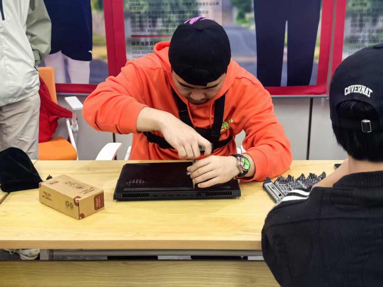 活动中,志愿者以专业技术为支撑,为全校学生提供免费设备检修、实用技能科普等一站式服务,活动现场暖意融融。本次活动聚焦学生高频需求,设置“免费修设备”“技能科普”“便捷服务”三大板块。针对系统崩溃、硬件小故障、网络异常等常见问题,志愿者们凭借扎实的专业功底边操作边讲解,累计服务学生80余人次(含电脑、平板),同步普及电脑散热清洁、电池养护等日常维护技巧,并针对网络安全热点,传授防诈骗软件识别、数据加密备份等实用知识。