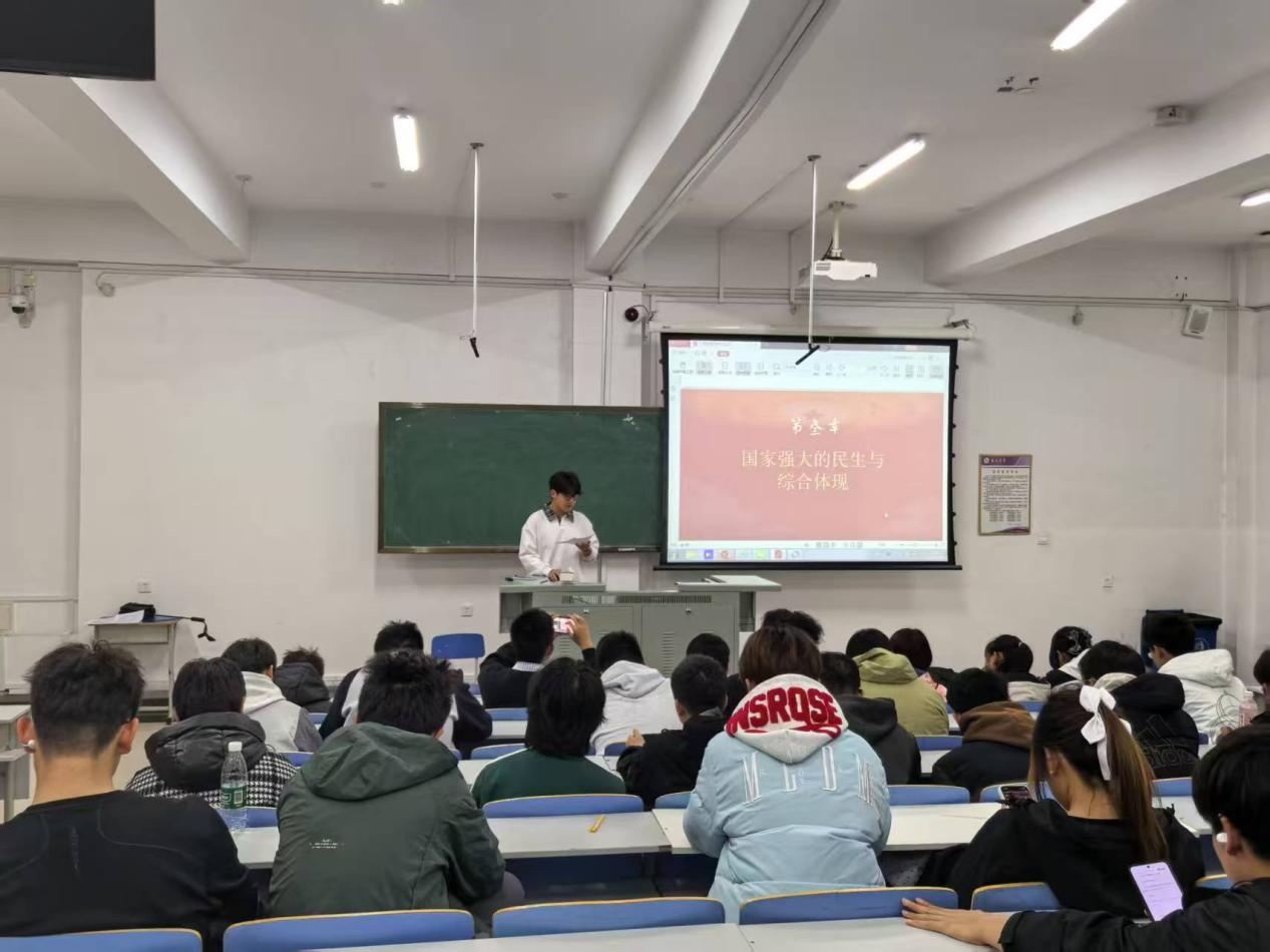 活动紧紧围绕习近平新时代中国特色社会主义思想展开,重点从“深化理论学习”和“注重实践教育”两个方面,深入探讨其基本内涵与深远影响。在活动过程中,宣讲成员结合工学院学科特色,号召同学们将专业学习与国家需求紧密结合,主动肩负时代赋予的责任与使命,积极投身科技创新与产业发展。现场还通过互动提问的形式,激发同学们的思考,围绕“如何以实际行动践行习近平新时代中国特色社会主义思想”展开深入讨论,进一步深化了大家对理论与实践相结合的深刻理解。