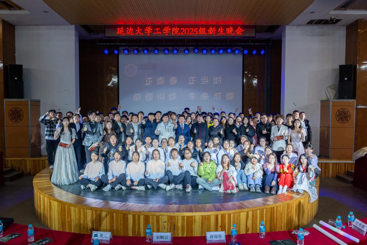 2025年11月22日16:30,延边大学工学院于美术学院报告厅举办“执匠心之笔,绘青春蓝图”2025级新生晚会,学院党委书记宋顺宗、副院长马勇虎、副院长朴锦春、学生工作办公室主任梁成杰、团委书记蒋君豪出席本次晚会。