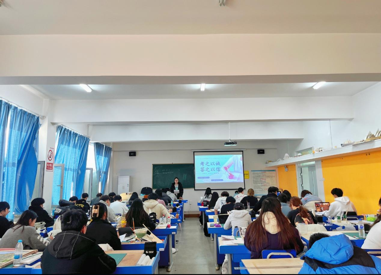 班会上,辅导员们通过案例分析、法规解读等方式,详细剖析考试作弊的危害及后果,强调诚信应考的必要性。例如,结合《中华人民共和国教育法》及学校违纪处分条例,警示学生切勿触碰纪律红线。同时,通过班级群发起“严守考纪—诚信立身”倡议,引导学生从思想上树立“以诚信为本”的价值观。此外,班会还增设互动环节,学生通过讨论作弊行为对个人学业、职业生涯的负面影响,进一步深化了对诚信考试重要性的认知。